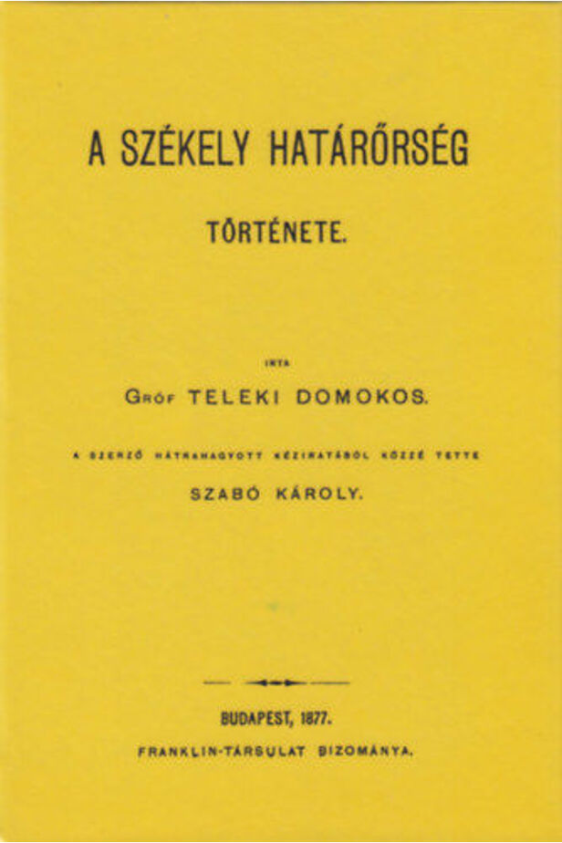 Teleki Domokos halála után a szerző hátramaradt dolgozatát Szabó Károly rendezte sajtó alá. A könyv a székely határőrség történetét tekinti át a kezdetektől egészen annak felbomlásáig.