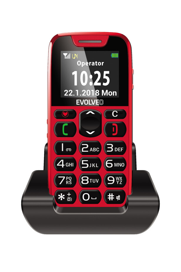 Large buttons, color display, SOS button, FM radio, Bluetooth, microSDHC, flashlight function.