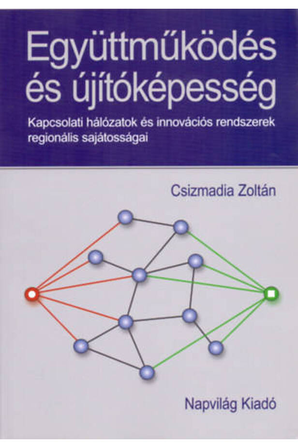 Együttműködés és újítóképesség, két nehezen körülhatárolható, azonban egyre népszerűbbé váló, egyre többet alkalmazott társadalomelméleti és fejlesztési alapkategória. Ráadásul napjaink társadalmi-gazdasági folyamataiban a kooperáció és az innováció viszonya, kölcsönhatása, dialektikája még kérdésesebb jelenség. Ez a könyv ennek a problémarendszernek a szervezetek szintjén értelmezett vonatkozásait járja körül úgy, hogy elsődlegesen a gazdasági szereplőkre és az innovációs folyamatokat befolyásoló, azt formáló, kiszolgáló intézményrendszerre összpontosít. Ennek a problémakörnek a hazai kutatási gyakorlatban az elmúlt néhány évet leszámítva kimondottan kevés figyelmet szenteltek. A könyv egyik újdonsága, hogy az innovációban érintett szereplők körében a kapcsolathálózat-elemzés segítségével hazánkban új térszervező kategória, a régió szintjén méri és ábrázolja az együttműködési hajlamot, annak csatornáit és az ezekre épülő rendszerszerű struktúra mintázatát. A feltárt új empirikus eredmények alapján összekapcsolható és továbbgondolható a regionalizálódás és az innovációs rendszer vonatkozásában a mezőelmélet és a hálózatelmélet számos tétele. A munka annak a kérdésnek a megválaszolásához is új elméleti támpontokat nyújt, hogy miért megy nehézkesen a régiók kialakítása és a regionális innovációs rendszerek megformálása Magyarországon.