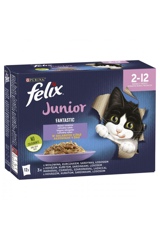 FELIX FANTASTIC Junior Assorted in aspic wet cat food 12x85g