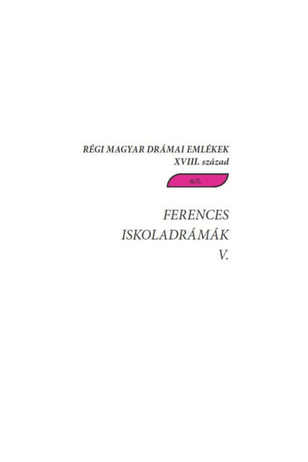 Az erdélyi Csíksomlyón a ferences gimnázium diákjai a 18. század elejétől minden évben passiójátékkal vagy valamilyen egyéb vallásos játékkal köszöntötték a nagypénteki vagy a pünkösdi ünnepre érkezőket, a környékbeli katolikus székely közösség tagjait. Ennek a páratlanul gazdag vallásos színjátszásnak fennmaradtak a szövegei is, az 1980-as évektől ismerjük a teljes szövegegyüttest. A Ferences iskoladrámák 5. kötetében két késői kéziratos drámagyűjtemény szövegeit adjuk közre. Az Actiones Comicae és Actiones Tragicae címet viselő füzetekbe bemásolt 13 drámaszöveg az 1773-1780 közötti időszakból való, így a csíksomlyói ferences színjátszás utolsó évtizedének gyakorlatát mutatja be. Ebben az időszakban Csíksomlyó már elvesztette archaizáló és unikális jellegét, s több szálon is bekapcsolódott a magyar nyelvű iskolai színjátszás vérkeringésébe. Elsősorban a jezsuita szerzők (pl. Illei János) és a jezsuita iskoladrámák hatása érződik ennek az évtizednek a repertoárjában, de jelentős a minorita, sőt a piarista szerzők hatása is. A darabok közül ötöt nagypénteken mutattak be (de közülük csak kettő volt hagyományos nagypénteki színjáték, vagyis passió és moralitás), a többit pünkösd szombatján adták elő.