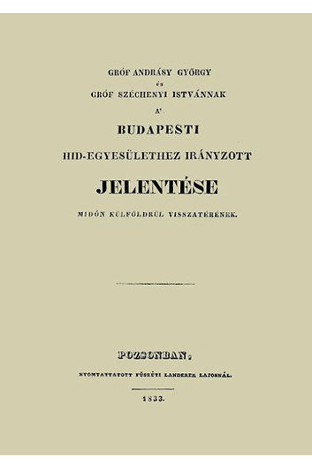 Gróf Andrásy György és gróf Széchenyi Istvánnak a' budapesti hid-egyesülethez irányzott jelentése midőn külföldrül visszatérének