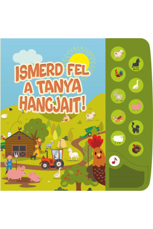 Egy tanyán sokféle állat él, és mindegyiknek más a hangja. Most megtudhatod, melyik a legnagyobb termetű baromfi, melyik a világon a legkedveltebb állat, és hogy nevezzük a tehén kicsinyét. Ráadásul a gombok megnyomásával bármikor meghallgathatod a kecske mekegését, a ló nyerítését és a cica nyávogását.