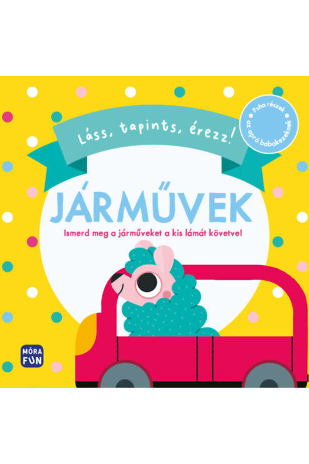 Érintsd meg a puha részeket minden oldalon, és fedezd fel a színes járműveket! A könyv remek lehetőség, hogy megismerkedj különböző közlekedési eszközökkel: a busszal, az autóval, a csónakkal, a repülővel és a traktorral! Lapozd végig a könyvet, és érints meg mindegyik járművet!