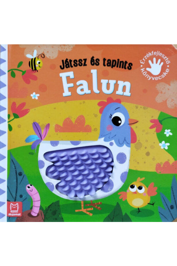 Előtted egy tyúkocska, Kaparászik az udvarban. Ebben a könyvben megnézheted, s ha akarod, érintheted. Ez az érzékfejlesztő könyv stimulálja a kicsik érzékszerveit. A gyermek nézi az állatos képeket, megismeri és megjegyzi a nevüket, versikéket hall és megérintheti a különböző textúrájú szilikonbetéteket. Ezeket megtapintva a kicsik megnyugszanak, elcsendesednek és ellazulnak. Az aprólékos és gyerekeknek szóló színes rajzokon a gyermek a falusi környezet lakóival találkozik: csirkével, tehénnel, borjúval, malacokkal és cicával, kossal és báránnyal, kakassal, békával, halacskákkal és kacsákkal. A könyv további értékét az illusztrációkon látható állatokról szóló versikék adják, melyek edzik a gyermek emlékezőtehetségét és gazdagítják a szókincsét. A kognitív stimuláció és játékos forma mellett ez a könyv kiváló segítség a kisgyermekek érzékszervi és finommotoros képességeinek fejlesztésében is. A "Játssz és tapints"-sal jól szórakoznak a gyerekek, miközben fejlesztik képességeiket. A könyv 0-3 éveseknek szól.