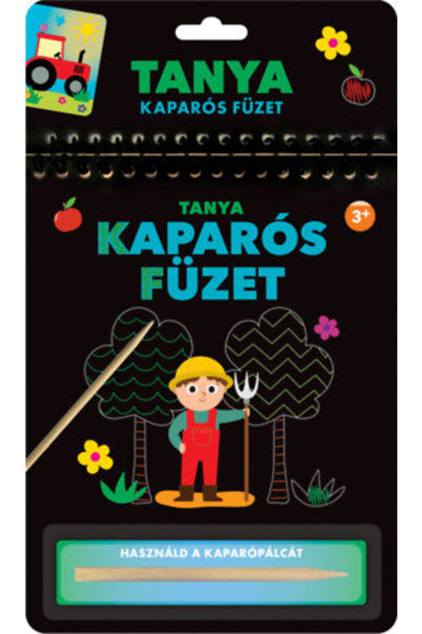 A Kaparós füzet - Tanya izgalmas foglalkoztató könyv, amely játékos formában ismerteti meg a gyerekeket a tanyasi élet világával. A kaparópálca segítségével előtűnnek a színes képek, amelyek Röfi, a traktor és a gazda mindennapjait ábrázolják. A kreatív tevékenység fejleszti a kézügyességet és képzelőerőt.