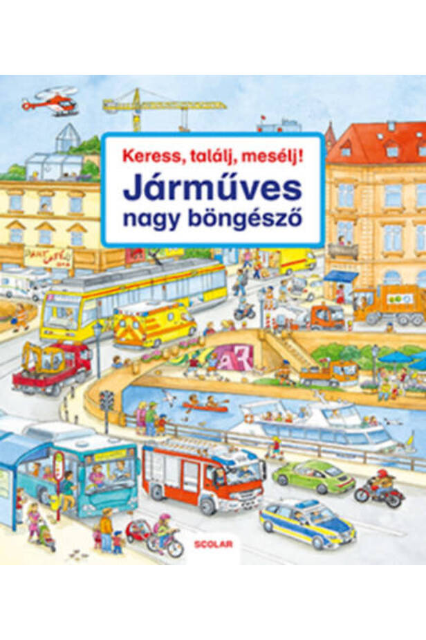 Ebben a nagy böngészőkönyvben rengeteg keresni, találni és mesélni való várja a kis járműrajongókat. A mozgalmas jeleneteket ábrázoló, részletgazdag képeket nézegetve a legkülönfélébb járművekkel ismerkedhetnek a gyerekek. A könyv készítői minden oldalpár szélén kiemeltek néhány tárgyat vagy élőlényt, melyeket a gyerekek megkereshetnek az adott oldalpár nagyméretű képén.