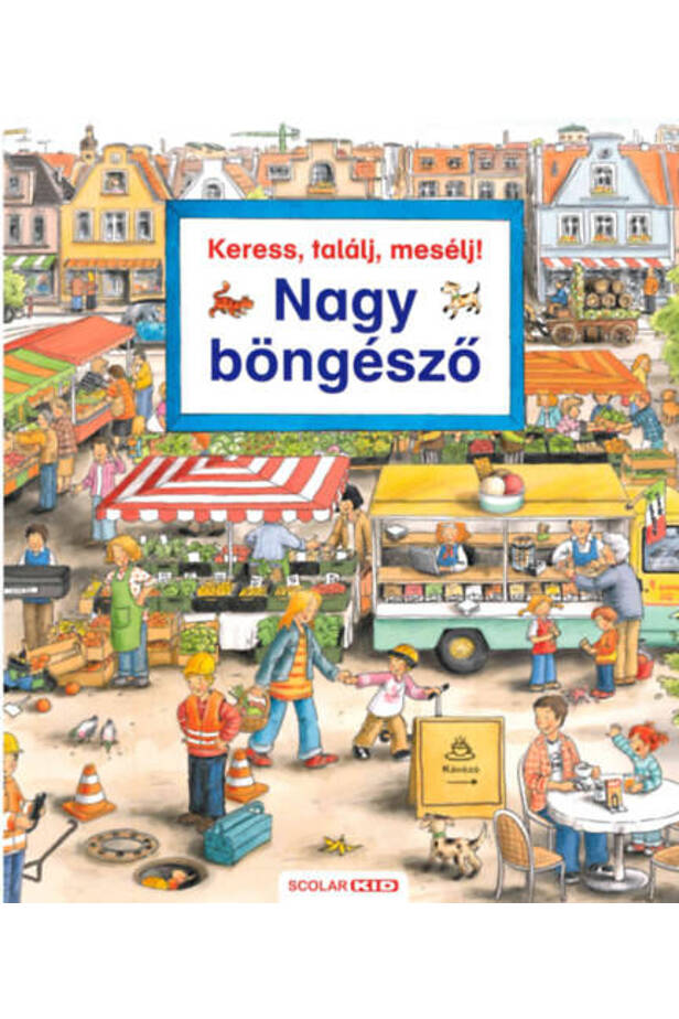 A negyedik Keress, találj, mesélj! képeskönyv nagyobb méretű, mint az eddigiek, így oldalai még több keresni-, találni- és mesélnivalót rejtenek. Piac, óvoda, építkezés, állatkert, országúti baleset, repülőtér, sportverseny, vasútállomás, hajókikötő, téli sportok, nagyvárosi forgalom – mind-mind izgalmas, felfedezésre váró témák az apróságok számára.