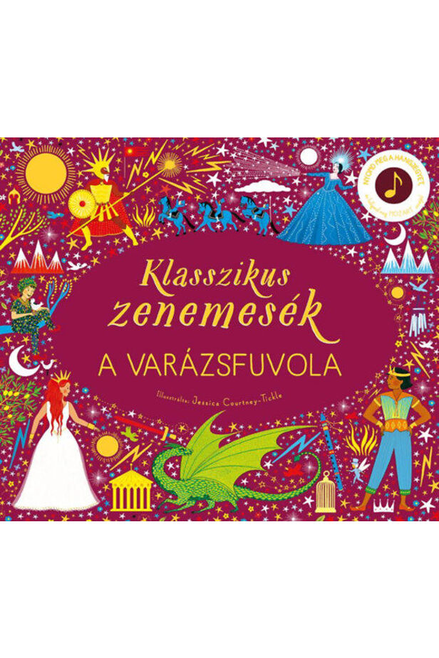 Nyomd meg a hangjegyet minden oldalon, hogy Mozart A varázsfuvola című darabjának bizonyos részletei életre keljen, majd hallgasd meg újra a dallamokat a könyv végén!
