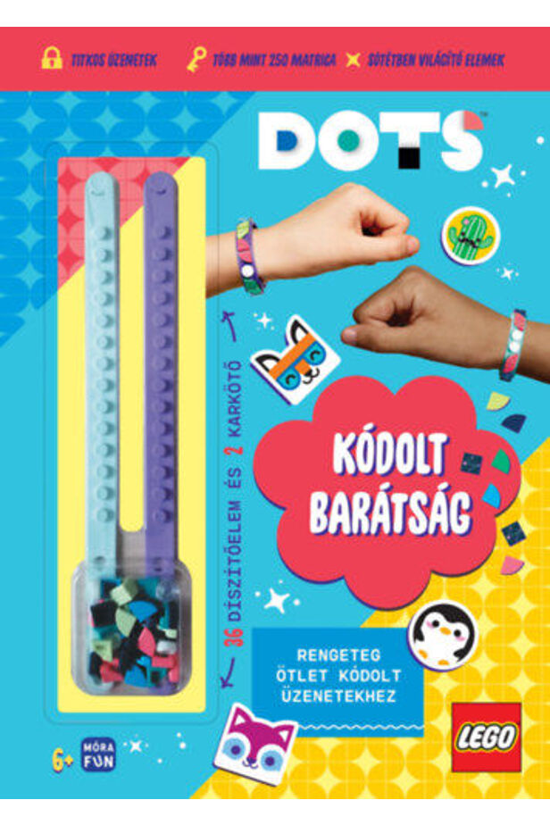 TE vagy ennek a szuper titkos LEGO DOTS könyvnek a szerencsés tulajdonosa! Fantasztikus dolgok rejtőznek benne: két karkötő, matricák, jegyzetlapok, valamint kivágható és összeállítható dobozkák. Így már meglesz mindened, amire szükséged lehet titkos üzenetek írásához, rajzolásához és különféle csomagolásához. Már küldheted is az üzenetet a barátaidnak!