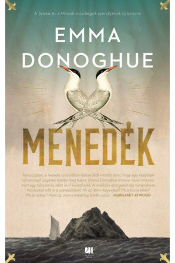 "Menedék. A hetedik századi Írországban három férfi bont vitorlát, és elhajózik egy madarakkal teli szigetre, hogy megtalálják Istent. Emma Donoghue könyve olyan intenzív, mint egy túlnyomás alatt levő kuktafazék. A radikális elszigeteltség tüneményes hatásokat vált ki a szereplőkből. Mi az isteni kegyelem? Mi a tiszta lélek? Mi az erény? Nem az, mint eredetileg hitték volna." - Margaret Atwood