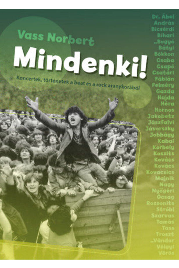 A Mindenki! az összekapaszkodás, az üvöltés, a szabadság és a szédület tapasztalatát hozza közel hozzánk. A közösen megélt katartikus pillanatokat. Előfordulhat, hogy a könyv olvasói és elbeszélői harminc, negyven, ötven évvel ezelőtt egymás mellett álltak egyik-másik bulin. A meghökkentő és nagyon ismerős, a szívszorító és sírva nevetős sztorik most újból összehozhatják a könnyűzene szerelmeseit.