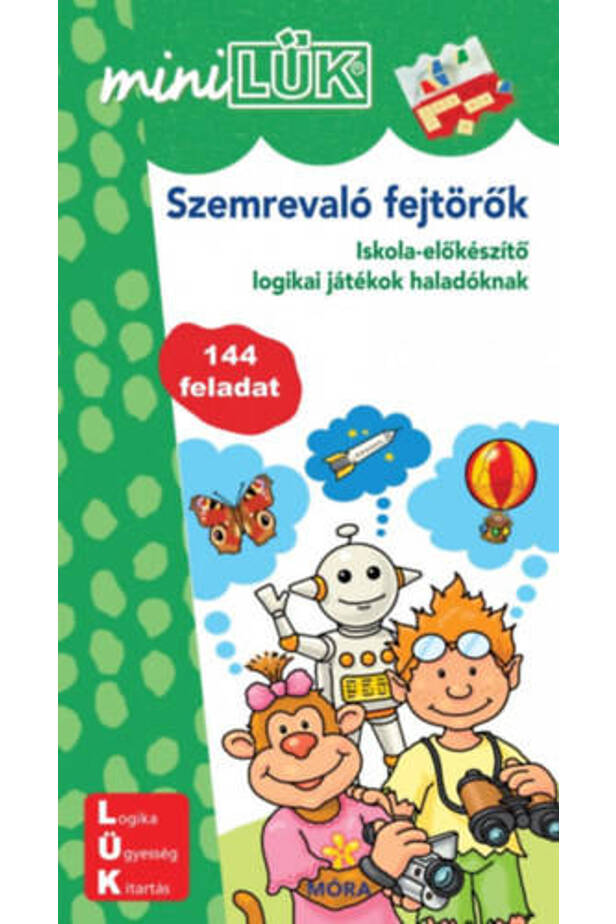 A füzet játékos feladatai csak úgy oldhatók meg jól, ha a kisgyermek több logikai műveletet végez egyszerre. Az érdekes, figyelemfelkeltő képek pontos megfigyelése, összehasonlítása és egymáshoz rendelésével igen hatékonyan fejleszthető a problémamegoldó gondolkodás. A feladatlapok összetettek, megoldásukhoz mindig több szempontot kell mérlegelni. A fejtörők játékosak, ugyanakkor épp összetettségük révén jelentős mértékben járulnak hozzá a bal, ill. a jobb agyféltekéhez köthető készségek és képességek összehangolt fejlődéséhez.