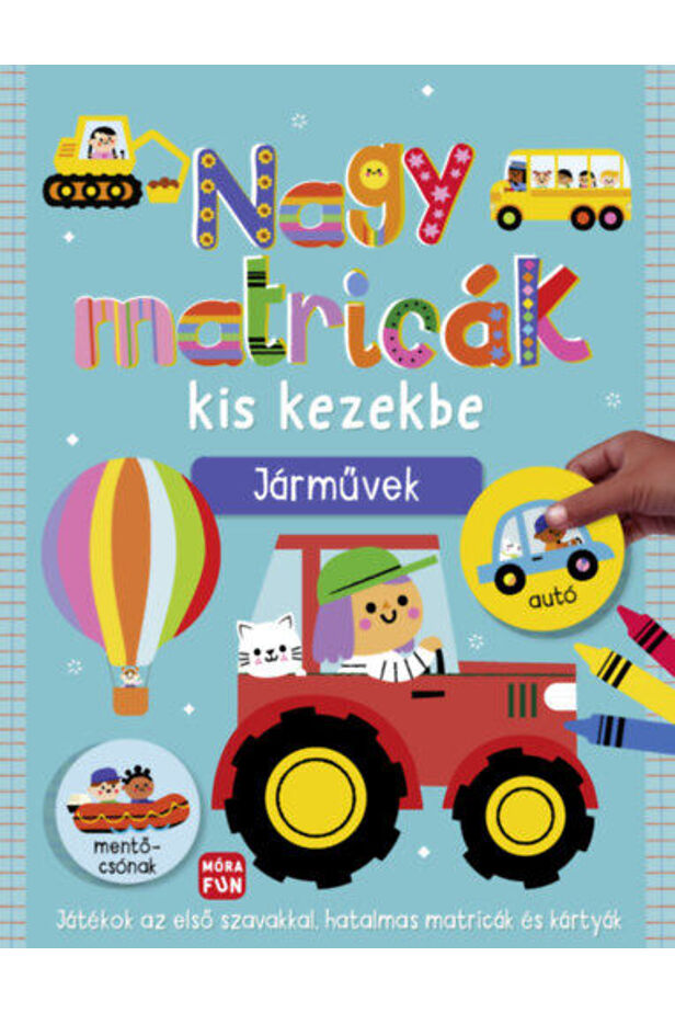"Ismerd meg a járműveket, és egészítsd ki az oldalakat a hatalmas matricákkal ebben az apróságoknak készült foglalkoztatókönyvben! Színezz kedvedre, majd pattintsd ki a mókás kártyákat! Próbáljátok ki a különböző játékokat, és közben utánozzátok a járművek hangját!"