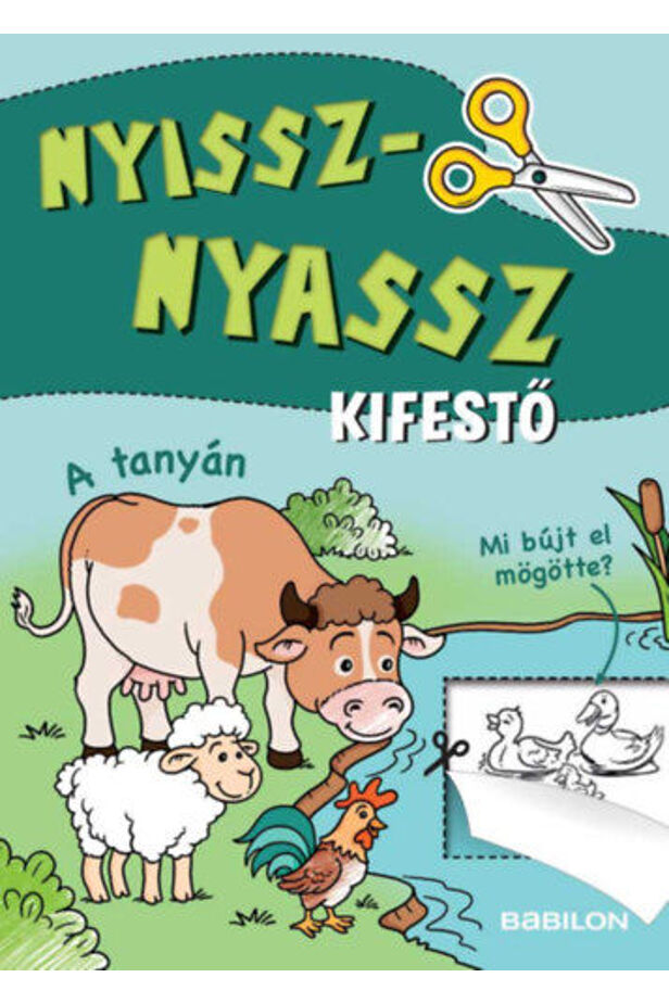 Egy traktor a mezőn, borjak az itatónál, nyuszik a ketrecben, egy rovarszálló a kertben és még sok háziállat várja, hogy kiszínezzék. Hol rejtőznek a tyúkok, a kismadár és a röfi? Színezd ki a képeket, és vágd el a papírt a szaggatott vonal mentén. Így átkukucskálhatsz a következő oldalra.