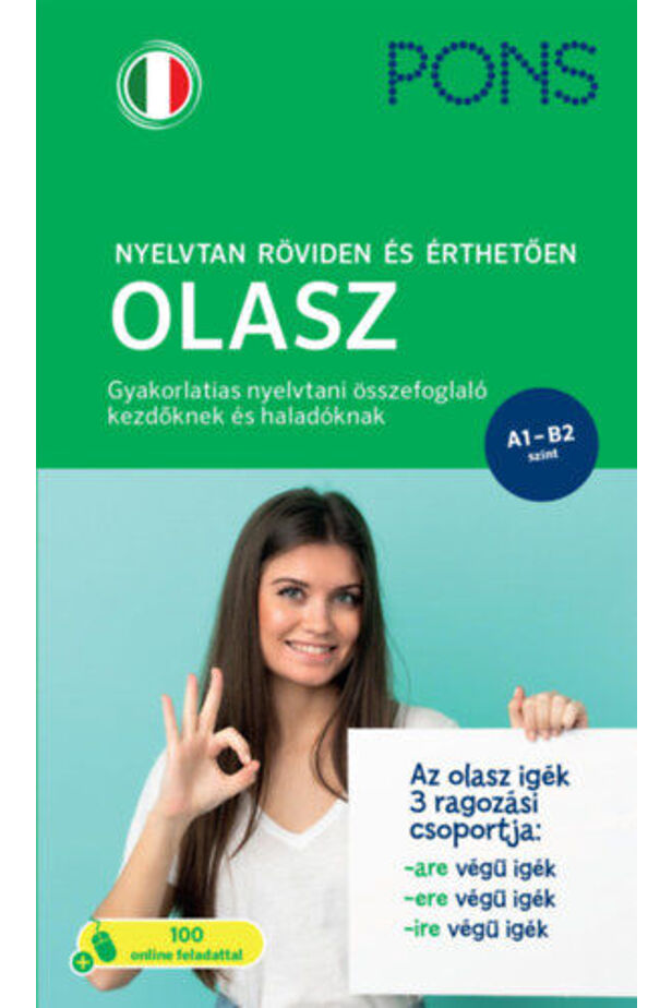 A PONS Nyelvtan röviden és érthetően - Olasz a legfontosabb olasz nyelvtani tudnivalókat mutatja be egyszerűen, logikusan felépítve és könnyen érthető magyarázatokkal. Ideális választás mind a kezdőknek, akik most ismerkednek az olasz nyelvvel, mind a haladó tanulóknak, akik szeretnék rendszerezni tudásukat vagy nyelvvizsgára készülnek.