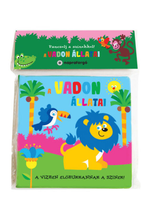 A Pancsolj a színekkel! - A vadon állatai interaktív pancsoló könyv, amelyben a kisgyerekek játékosan fedezhetik fel a dzsungel és a szavanna állatait. Csak egy kis víz kell, és máris előbukkannak a színek! A tukánok, majmok, oroszlánok és más vadállatok életre kelnek, majd száradás után eltűnnek, hogy újra kezdődhessen a móka.