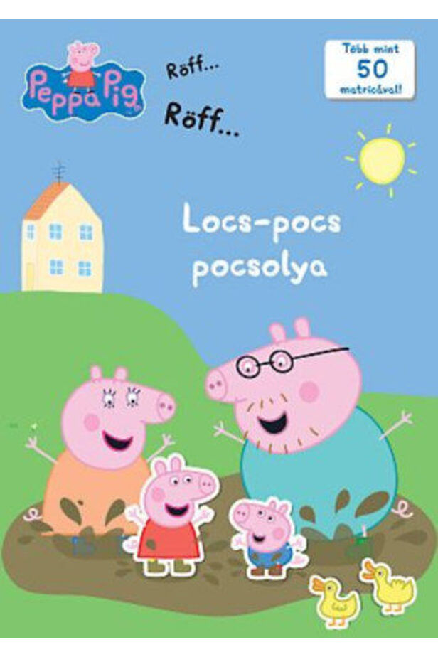 Gyere locsogj, pocsolj és tocsogj Peppával és Zsolival a sáros pocsolyákban ebben a több mint 50 matricát tartalmazó foglalkoztató és színező könyvben.