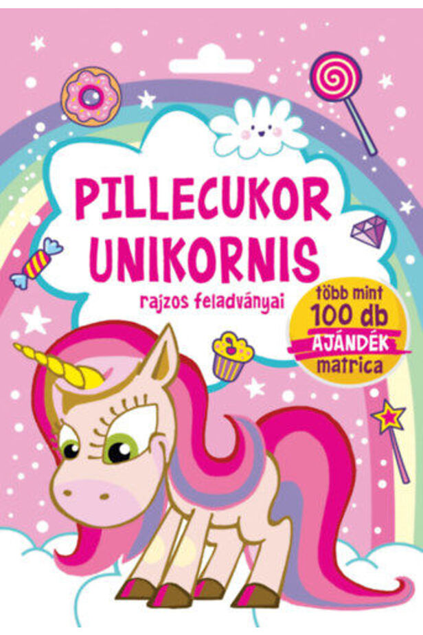 Pillecukor, a bájos unikornis, vidám feladatokkal, színezőkkel, rajzolnivalókkal és több mint 100 szuper matricával vár téged!
