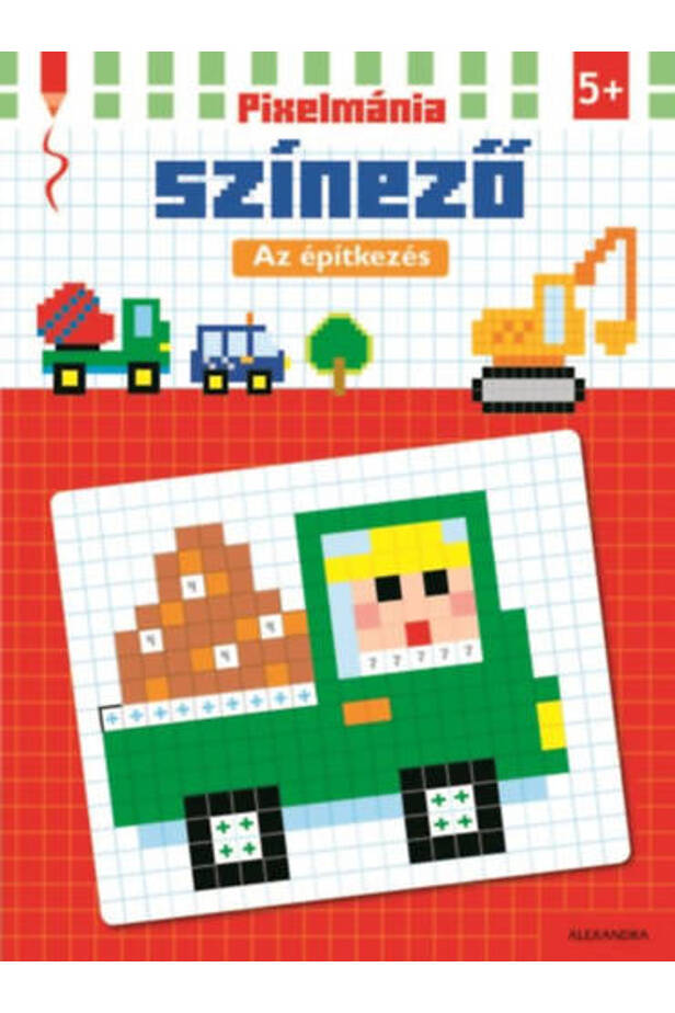Milyen egy építkezés a pixelek világában? Most felfedezheted és ki is színezheted! A pixelmánia a színezés teljesen új módja, melyet a videójátékok látványvilága inspirált. Az apró, szabályos négyzetek színezésével fantasztikus formavilág bontakozik ki a lapokon. Színezd ki a négyzeteket a színkód alapján, hogy meglásd az oldalakon rejtőző buldózert, darut vagy kotrógépet! Nahát! Igazi pixel-művész lettél! A pixeles színezés szórakoztató, fejleszti a gyerekek finommotoros mozgását és képzeletvilágát. Kiváló lehetőség a nyugodt koncentrálásra.