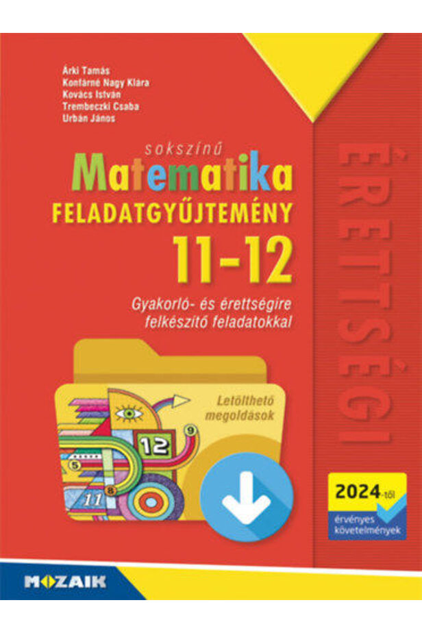 Based on the experiences of the 2024 graduation exam, we have tried to follow the changes in the NAT and graduation exam in the slightly revised collection of tasks. The sections dealing with the equation of a straight line are adapted to the different needs of the intermediate and advanced level graduation exams, and greater emphasis has been placed on new task types (box diagram, cumulative and installment, etc.). In addition to 892 11th grade and 578 12th grade tasks, the volume contains 617 systematizing and summarizing tasks, 10 intermediate level and 5 advanced level graduation task sets.