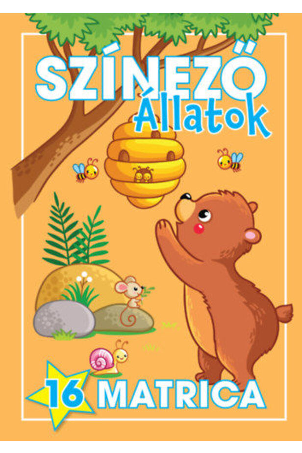 16 állatos színező 16 színes matricával, melyek segítségével kiszínezheted a rajzokat.
