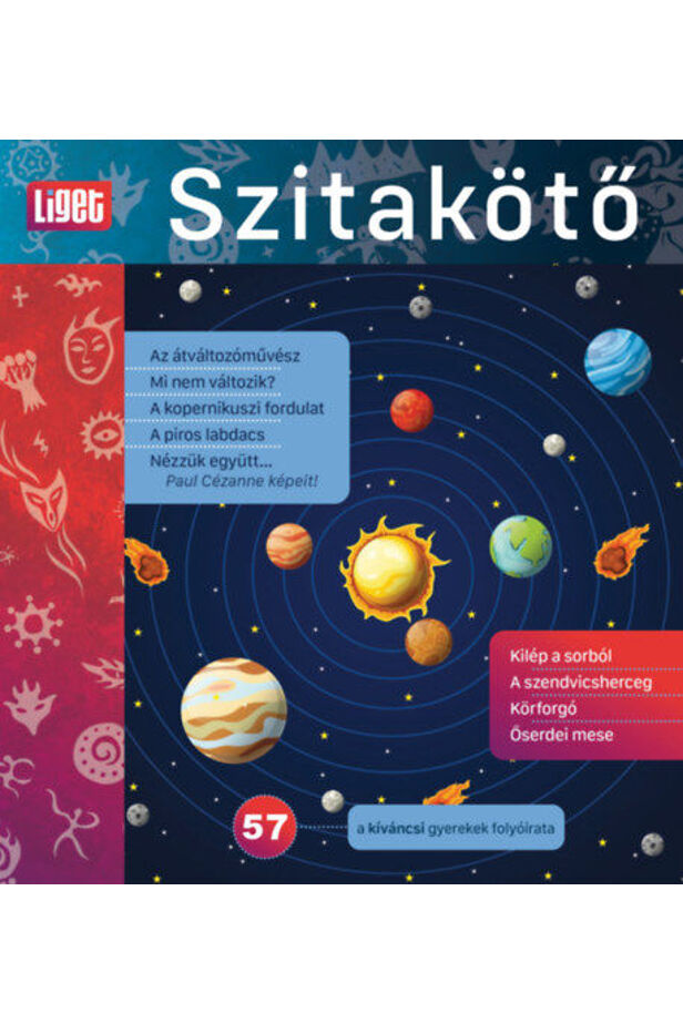 A tavaszi Szitakötőből megtudhatjuk, hogy minden, de tényleg minden változik: a növények, az emberek, az állatok, a bolygók mozgása, a zene, a divat, a nyelv és a tudományos igazságok. Afrikától az őserdőn át a mesebeli Kukumbár bolygóig kalandozunk, ámulva nézzük Cézanne képeit, kíváncsian figyeljük boszorkányok, sámánok, táltosok és mitológiai alakok varázslatait, hogy a sok-sok változás között végül felismerjük: akkor leszünk boldogok, ha önmagunkkal azonosak maradunk.