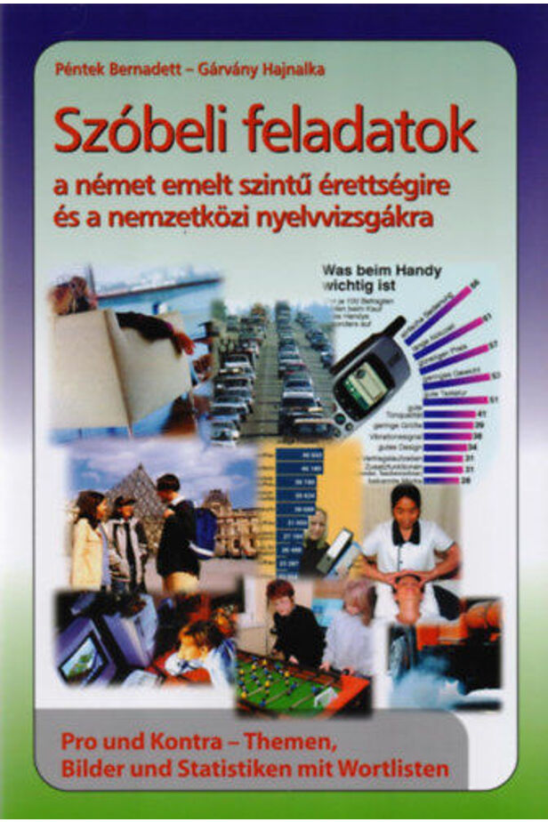 Könyvünk feladatai az emeltszintű szóbeli érettségi vizsgára és a nemzetközi nyelvvizsgákra (pl. ZMP, ÖSD) való felkészülésben egyaránt felhasználhatóak. A kiadvány első része „Pro und Kontra" -feladatokat tartalmaz. Ennél a feladatnál az emeltszintű érettségin egy kijelentést olvashat a vizsgázó, amely mellett vagy ellen érvelnie kell. A vizsgáztató tanárral kell vitatkoznia, aki mindig ellentétes álláspontot képvisel a témával kapcsolatban. Ebben a fejezetben mintegy 42 témához gyűjtöttünk össze vázlatpontokat— kifejezések és rövid mondatok formájában— amelyek sok segítséget nyújthatnak ezen feladat begyakorlásában. A könyv második részében az önálló témakifejtést lehet gyakorolni képek és statisztikák segítségével. Az önálló téma kifejtéséhez segítséget nyújtanak a képek előtti fejezetben található irányító kérdések és szószedetek. A statisztikák kifejtéséhez kifejezéseket is összegyűjtöttünk. Az emelt szintű érettségin általában két „ellentétes" képet kap a vizsgázó, amelyekről önállóan kell beszélnie - természetesen élesben ott már irányító, segítő kérdések és szószedet nélkül. A könyv képei között sok ilyen ellentétes képpár is található. Könyvünk sok segítséget nyújt az említett vizsgákra való felkészülésben ill. felkészítésben.