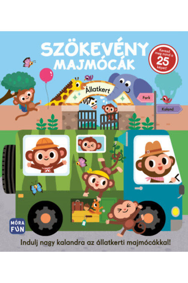 A pajkos állatkerti majmócák kalandozni indulnak az őserdőbe. Tarts a szökevényekkel, és mesehallgatás közben keresd meg a képeken a 25 apró részletet, így részese lehetsz az élménynek!