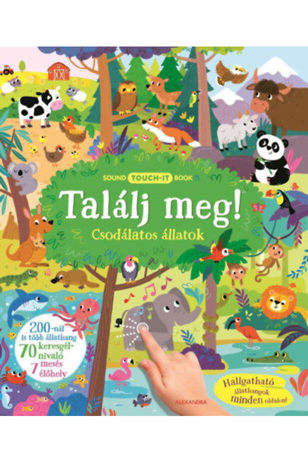 Figyelem: varázskönyvet tartasz a kezedben! Nyomd meg az állatok melletti szürke pöttyöt, és életre kelnek. Több mint 200 valódi állathang és 7 mesés élőhely várja, hogy felfedezd. Találd meg az állatokat a hangjuk alapján, és tanulj játszva a varázslatos hangoskönyv segítségével.