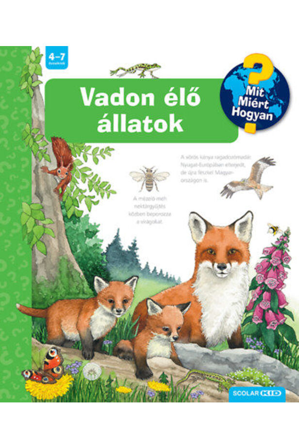 A Ravensburger népszerű Mit? Miért? Hogyan? gyermekkönyvsorozatának 70. kötetét lapozgatva az óvodások és a kisiskolások megtudhatják, milyen vadállatok élnek az erdőben, a réten, a szántóföldön, a hegyekben, a vízparton, a kertben, a városban, milyen nyomokat hagynak, és mi mit tehetünk a közelünkben élő állatokért.