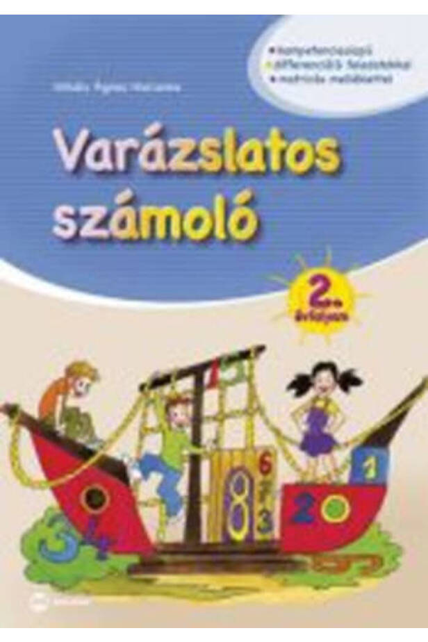 A Varázslatos számoló 2. évfolyam című gyakorló számtani alapokra helyezve fejleszti a biztonságos szám- és műveletfogalomra épülő számolási készségeket. A kiadvány célja a matematikai készségek, képességek gyakoroltatása, a logikai gondolkodás fejlesztése, illetve a megszerzett matematikai tudás rögzítése, elmélyítése. Az összegyűjtött matricákból egy a matematikához kapcsolódó izgalmas puzzle-t állíthatnak össze a gyerekek, amely a tantárgy megszerettetését is elősegíti.