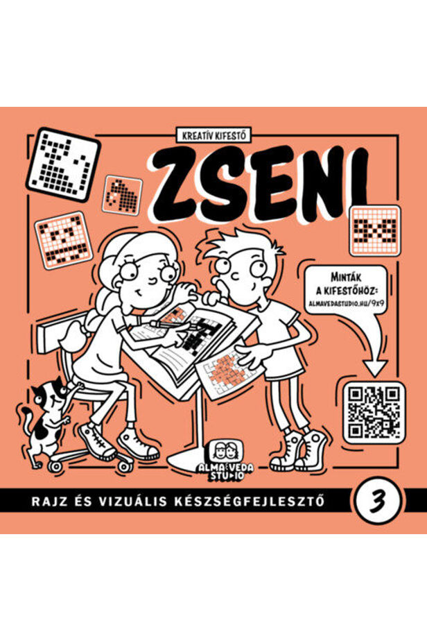 A ZSENI sorozat harmadik része egy különleges kifestő. Minden oldala 81db (9x9 elrendezésű) négyzetben, illetve körben jelöli ki a kifestő határait. Ezen belül azonban teljes szabadságot kapsz az alkotáshoz. Menet közben rá fogsz jönni, hogy mennyire fantasztikus játék csak a színekkel és a legegyszerűbb bázisformákkal játszani. A lehetőségek határtalanok és csak rajtad múlik, hogy mit hozol ki belőle. Eközben elsajátíthatod a pontos vonalvezetést és megtanulod, hogyan legyél képes a bonyolultabb formákat is leegyszerűsíteni.